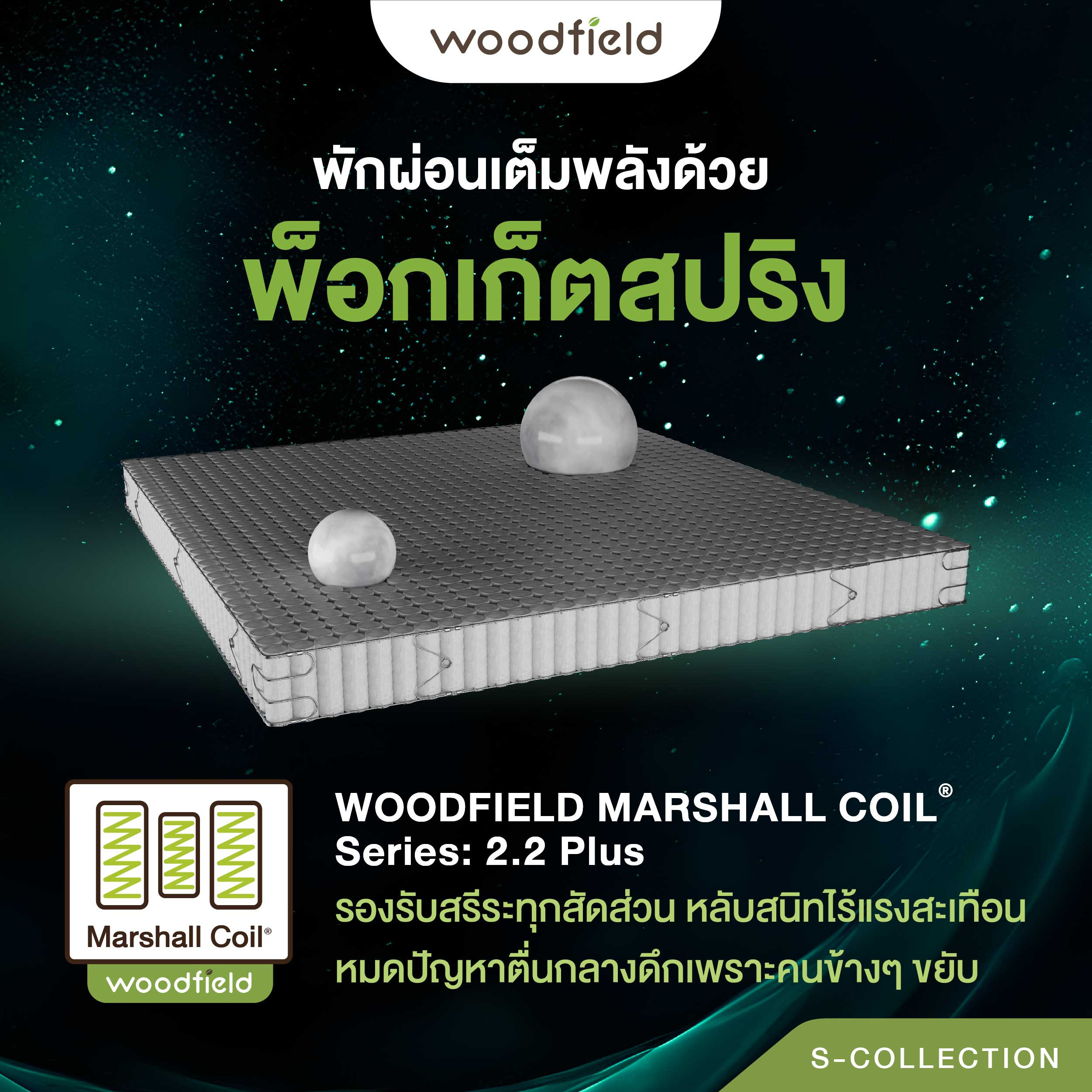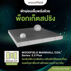 - สปริง Woodfield Marshall Coil ® Series:2 – Plus – ระบบพ็อกเก็ตสปริง Marshall Coil ® ลิขสิทธิ์เฉพาะจาก USA รุ่น Firm Comfort มอบการรองรับที่โอบอุ้มสรีระและลดแรงกดทับได้ดีเยี่ยม ด้วยลูกสปริงที่เล็กและเตี้ยกว่า ทำให้เพิ่มประสิทธิภาพการรับน้ำหนัก โดยลูกสปริงแต่ละตัวทำงานแยกอิสระ หมดปัญหาการตื่นกลางดึกเพราะที่นอนสั่นสะเทือนจากคนข้างกายขยับหรือพลิกตัว