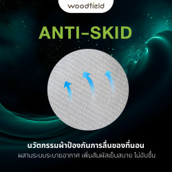 - Anti–Skid ผ้าชนิดพิเศษป้องกันการเคลื่อนที่ เสริมระบบระบายอากาศ ลดความอับชื้นภายในที่นอน